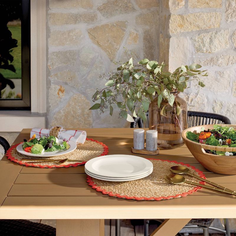 Enhance your food presentation with this Melamine Salad Plate from Hearth & Hand™ with Magnolia. Made of melamine, this round plate features raised edges to contain your meals and offers an elevated l…