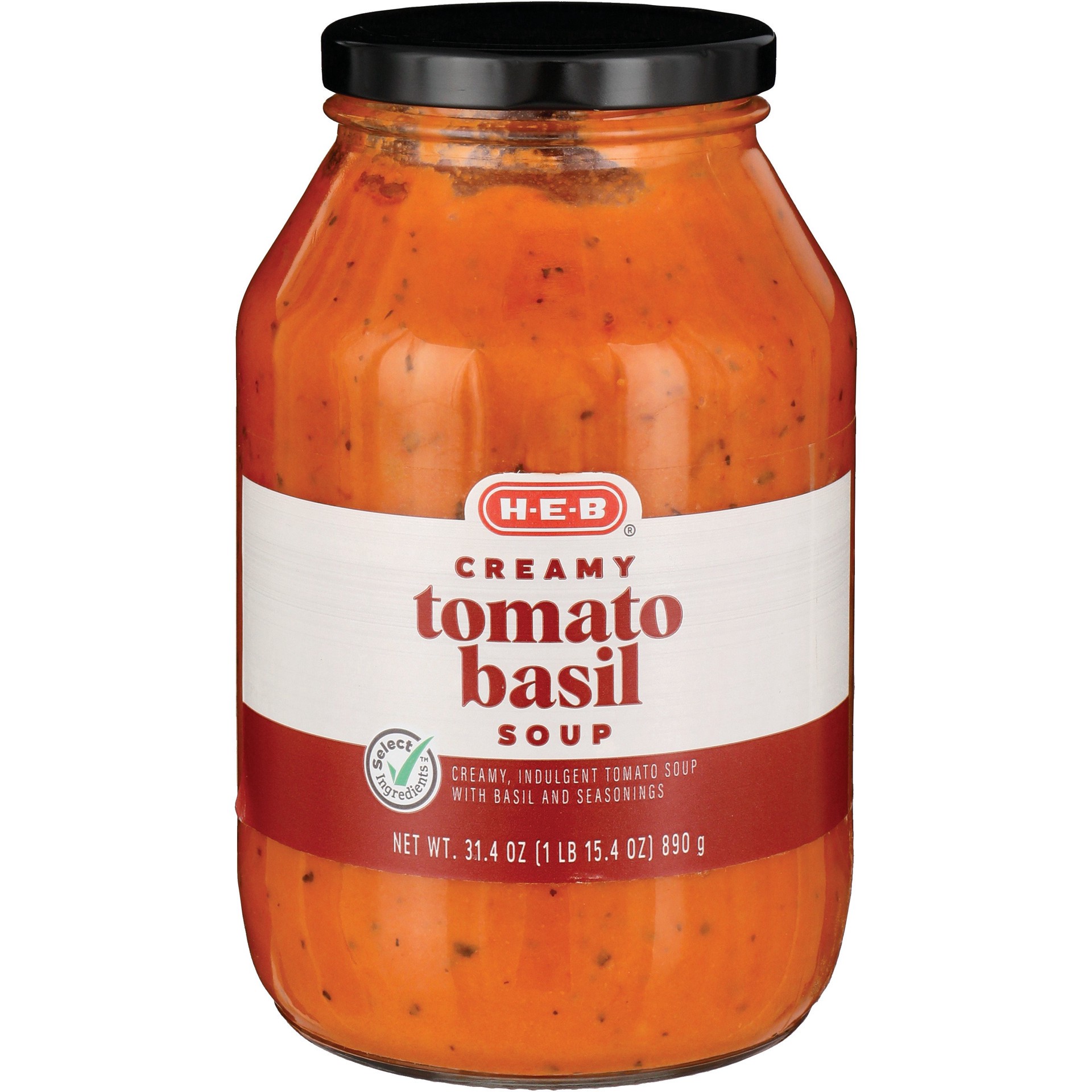 Rich and velvety, H-E-B creamy tomato basil soup is the ultimate comfort food with a gourmet-quality twist. After heating it up on the stovetop, enjoy with your favorite crackers or a ooey-gooey grill…