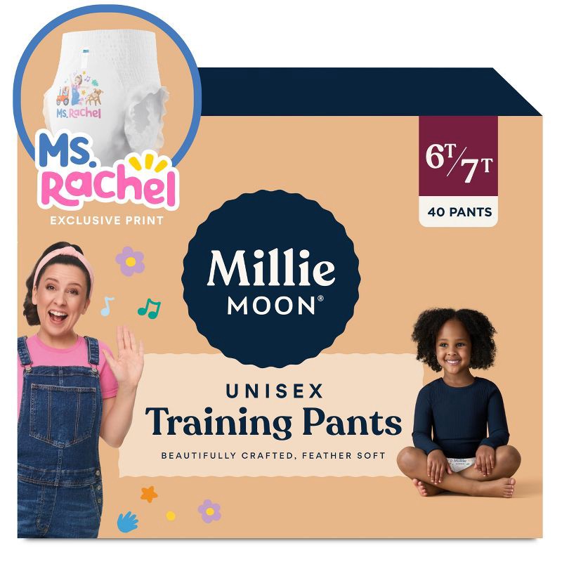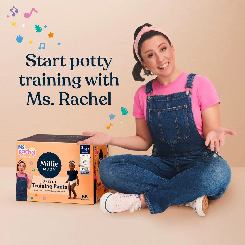 Millie Moon Ms Rachel Training Pants are here to make potty training fun! Expertly crafted DreamFit™ Design for ultimate comfort, diaper-like absorbency and a fun Ms Rachel print that little friends w…
