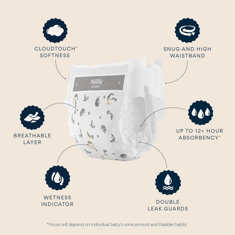 Millie Moon Disposable Overnight Diapers - Size 3 - 66ct