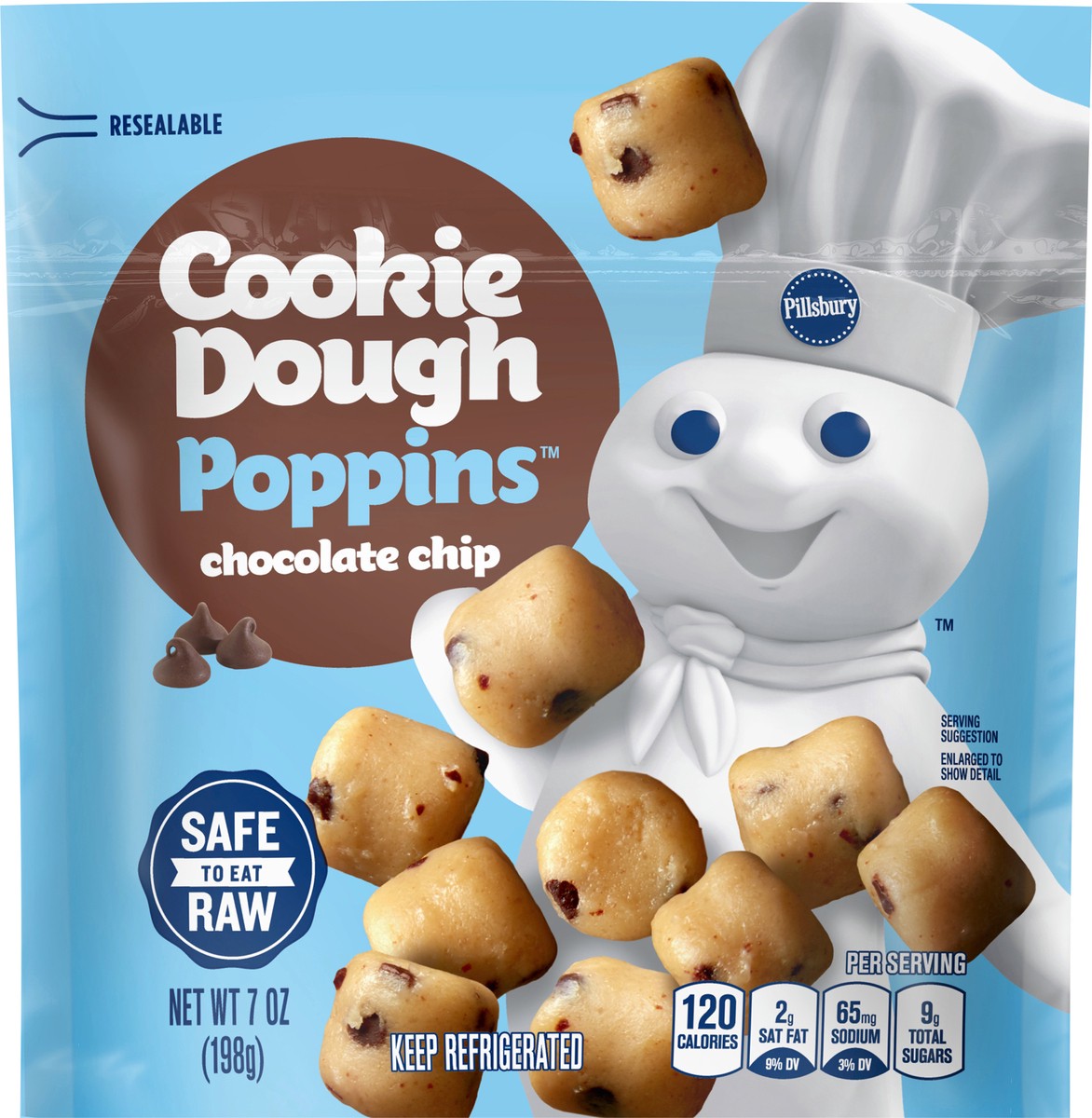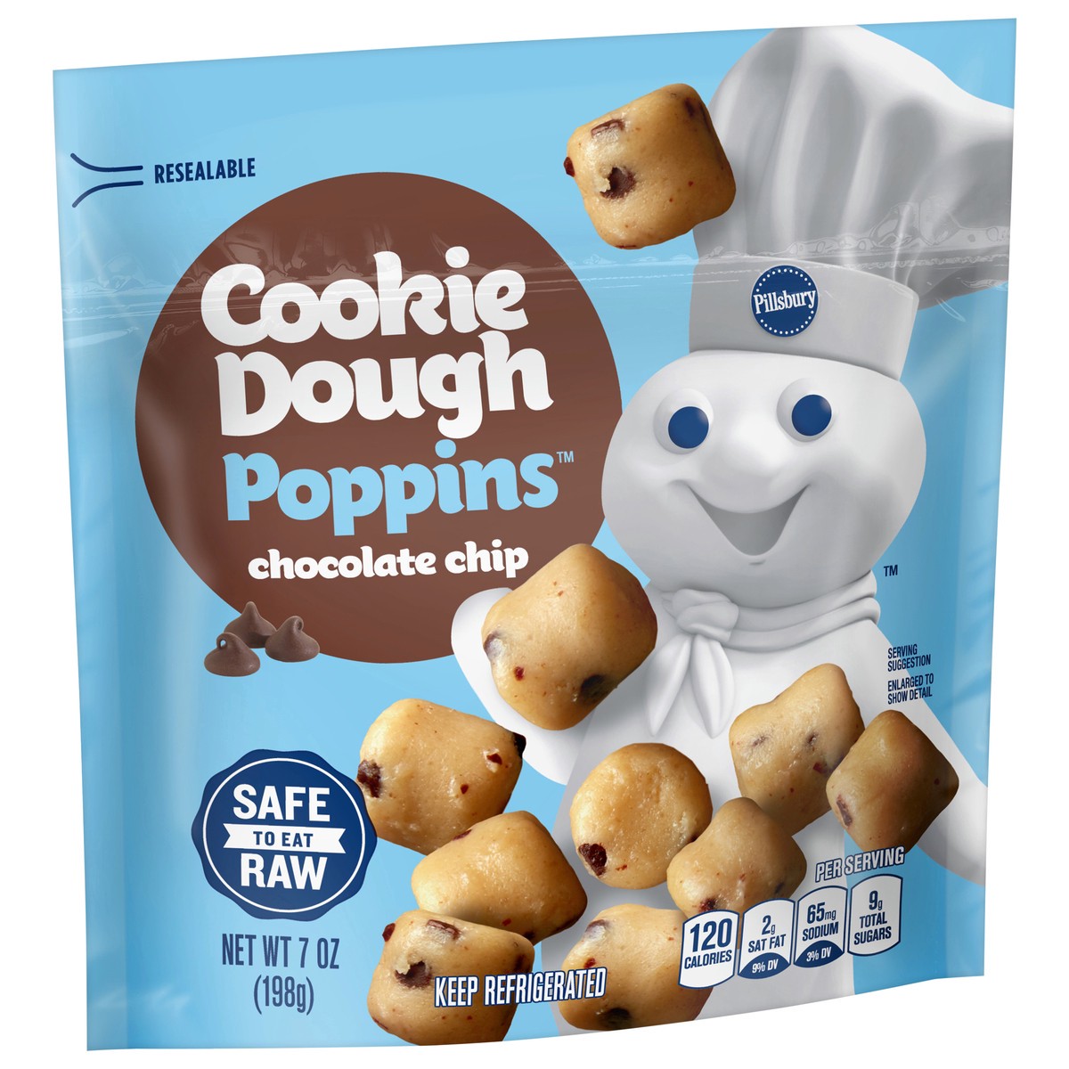 Pillsbury Chocolate Chip Cookie Dough Poppins, Safe to Eat Raw, Resealable Snack Pouch, 7 oz
