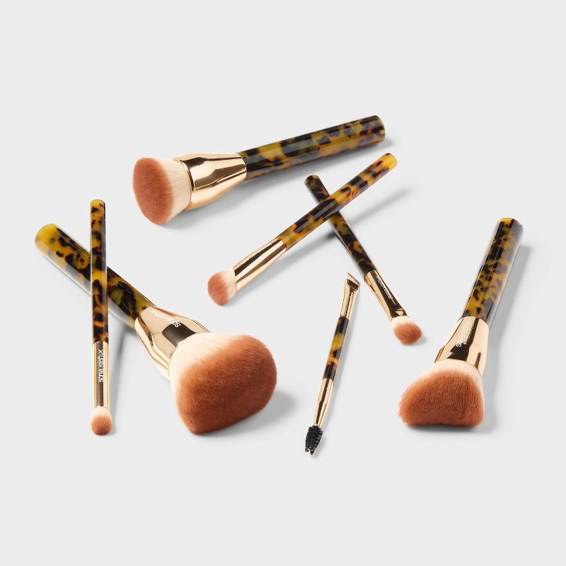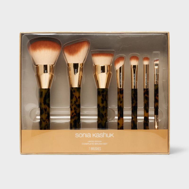 Glam up your look with this 7-Piece Tortoise Fashion Complete Set from Sonia Kashuk™. This set includes seven brushes — eyeshadow, eyeliner, highlighter, foundation, concealer, powder, and brow — idea…