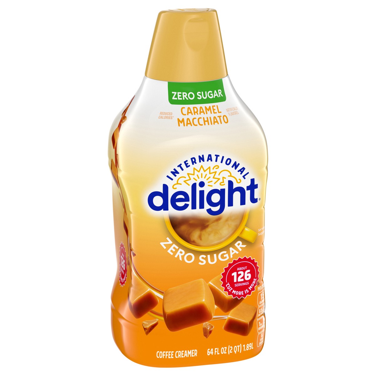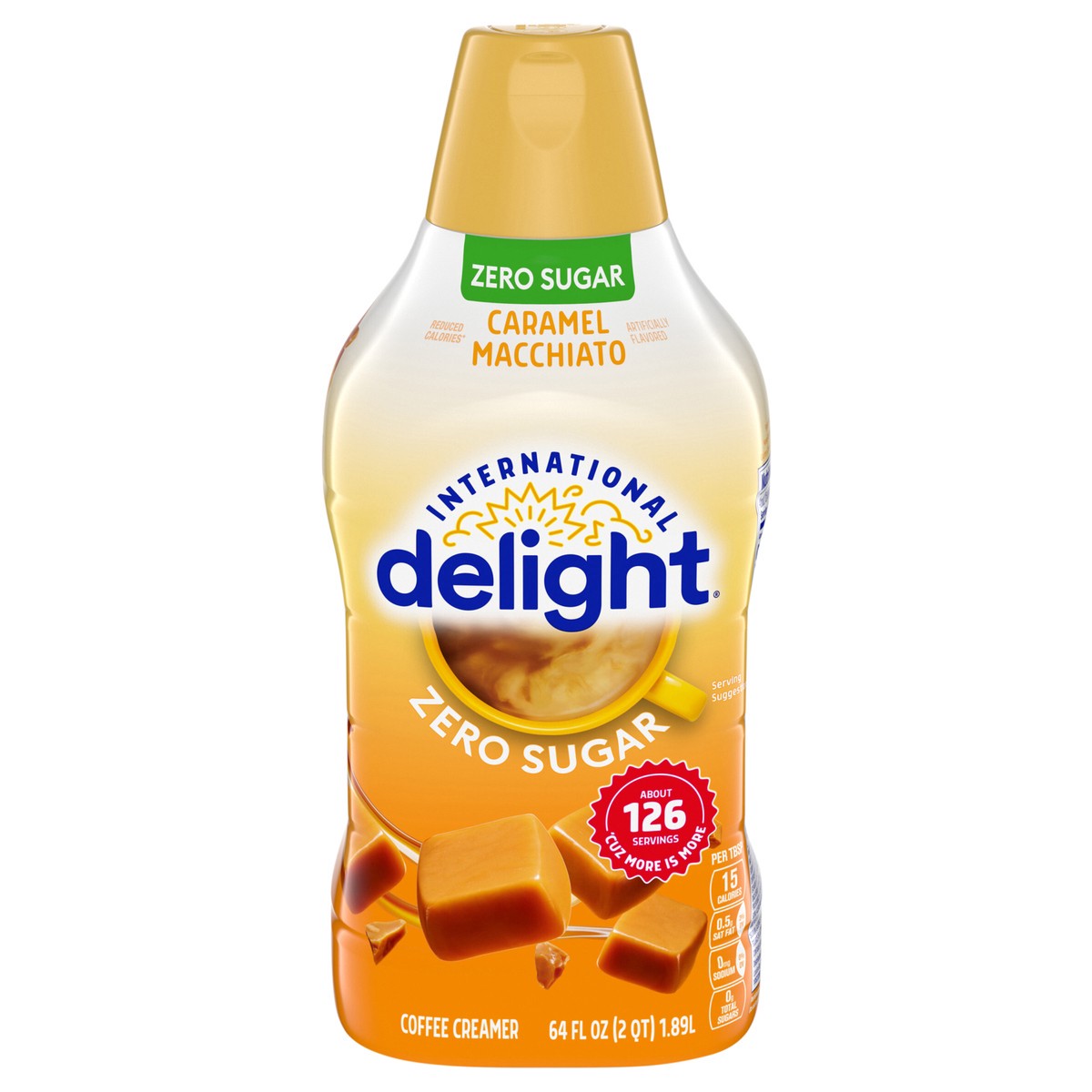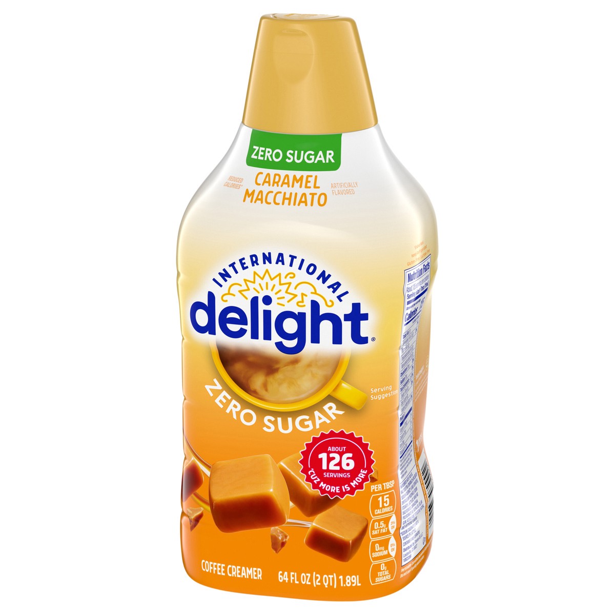 - ALWAYS DELIGHTFUL: One 64 fl oz bottle of International Delight Refrigerated Zero Sugar Caramel Macchiato Coffee Creamer LiquidLEAVE ROOM FOR FLAVOR: Rich caramel flavor creamer that’s ready for your cupMORNINGS, AFTERNOONS, ALL DAY LONG: Try International Delight Zero Sugar Caramel Macchiato creamer in cold brew coffee or other beverages and treatsALL OF THE FLAVOR AND NONE OF THE SUGAR: This liquid coffee creamer is a delightful sugar-free alternativeSHARE THE JOY: International Delight creamers are free from lactose and gluten (contains sodium caseinate, a milk derivative)