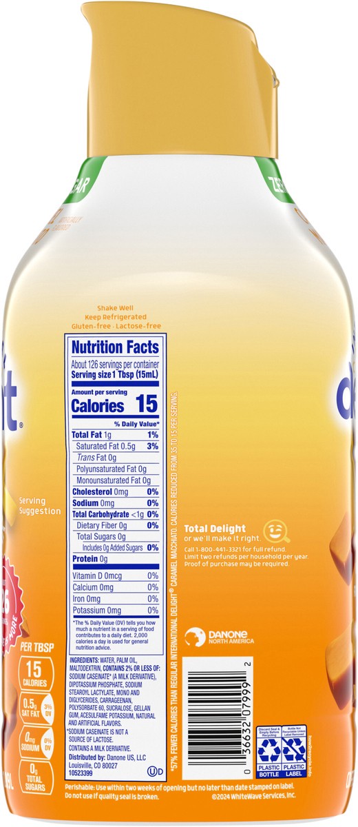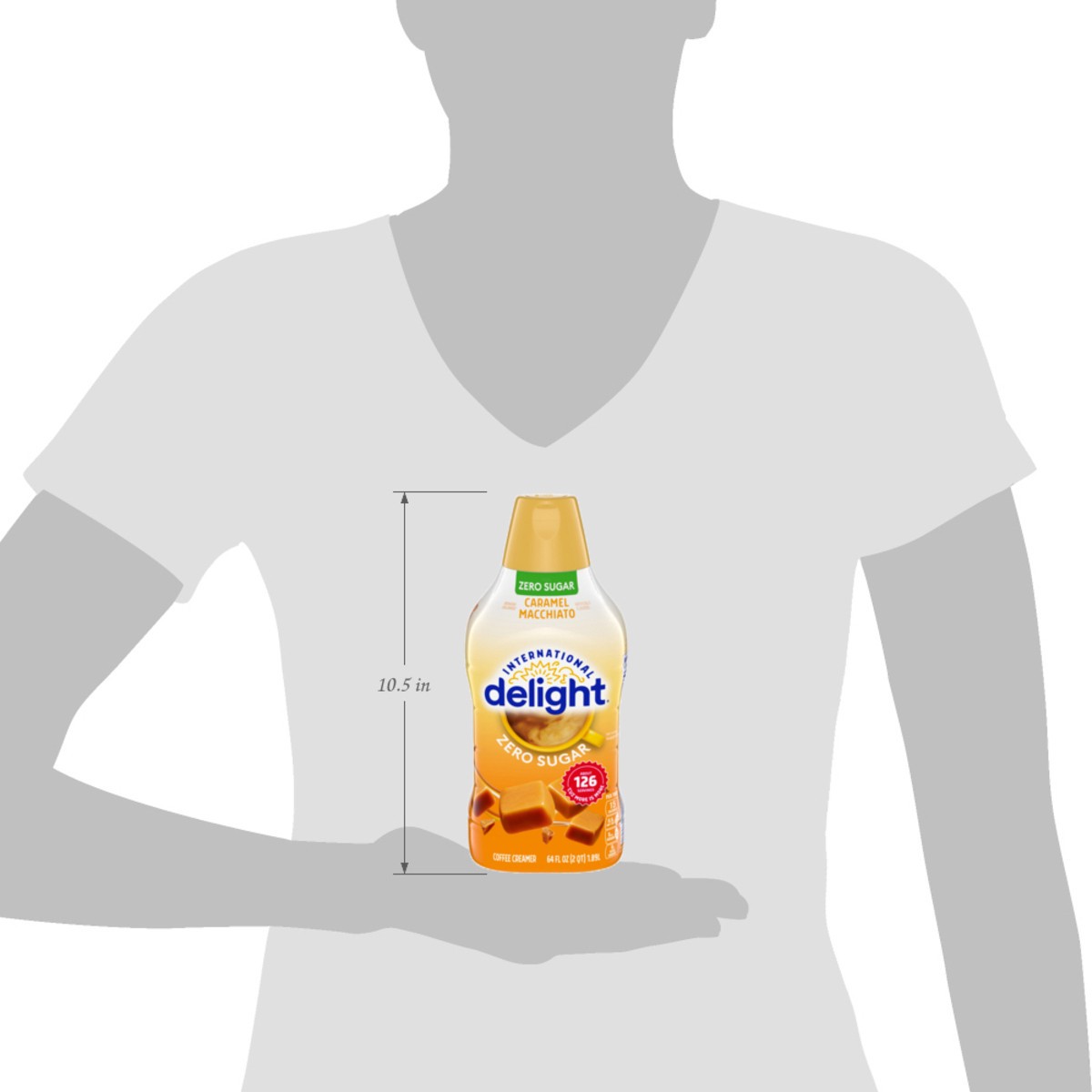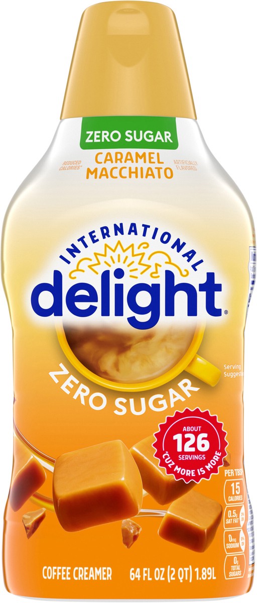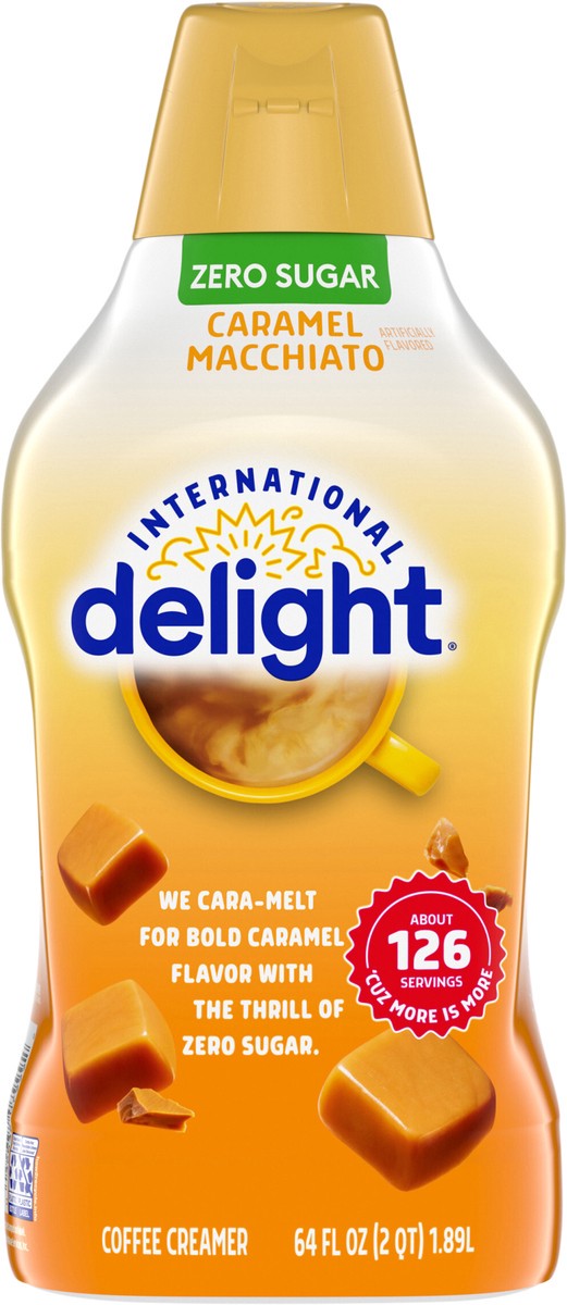 - ALWAYS DELIGHTFUL: One 64 fl oz bottle of International Delight Refrigerated Zero Sugar Caramel Macchiato Coffee Creamer LiquidLEAVE ROOM FOR FLAVOR: Rich caramel flavor creamer that’s ready for your cupMORNINGS, AFTERNOONS, ALL DAY LONG: Try International Delight Zero Sugar Caramel Macchiato creamer in cold brew coffee or other beverages and treatsALL OF THE FLAVOR AND NONE OF THE SUGAR: This liquid coffee creamer is a delightful sugar-free alternativeSHARE THE JOY: International Delight creamers are free from lactose and gluten (contains sodium caseinate, a milk derivative)