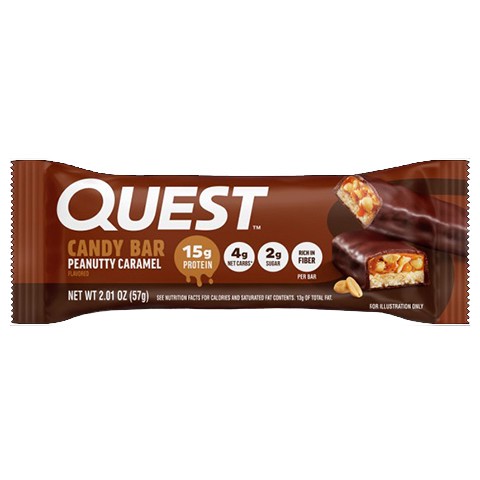 Succumb to sweet, sweet protein New Quest™ Peanutty Caramel Flavor Candy Bars feature layers of gooey caramel flavors, fluffy nougat, roasted peanuts, and a chocolatey coating for a deliciously sweet …