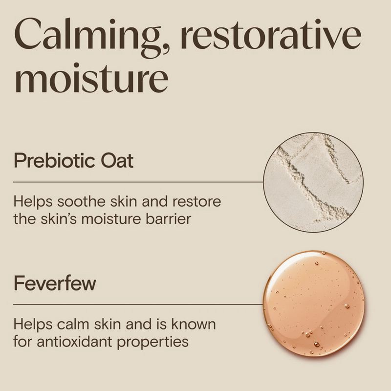 - Fast-absorbing daily moisturizer with soothing prebiotic oat to nourish skin & calming feverfew