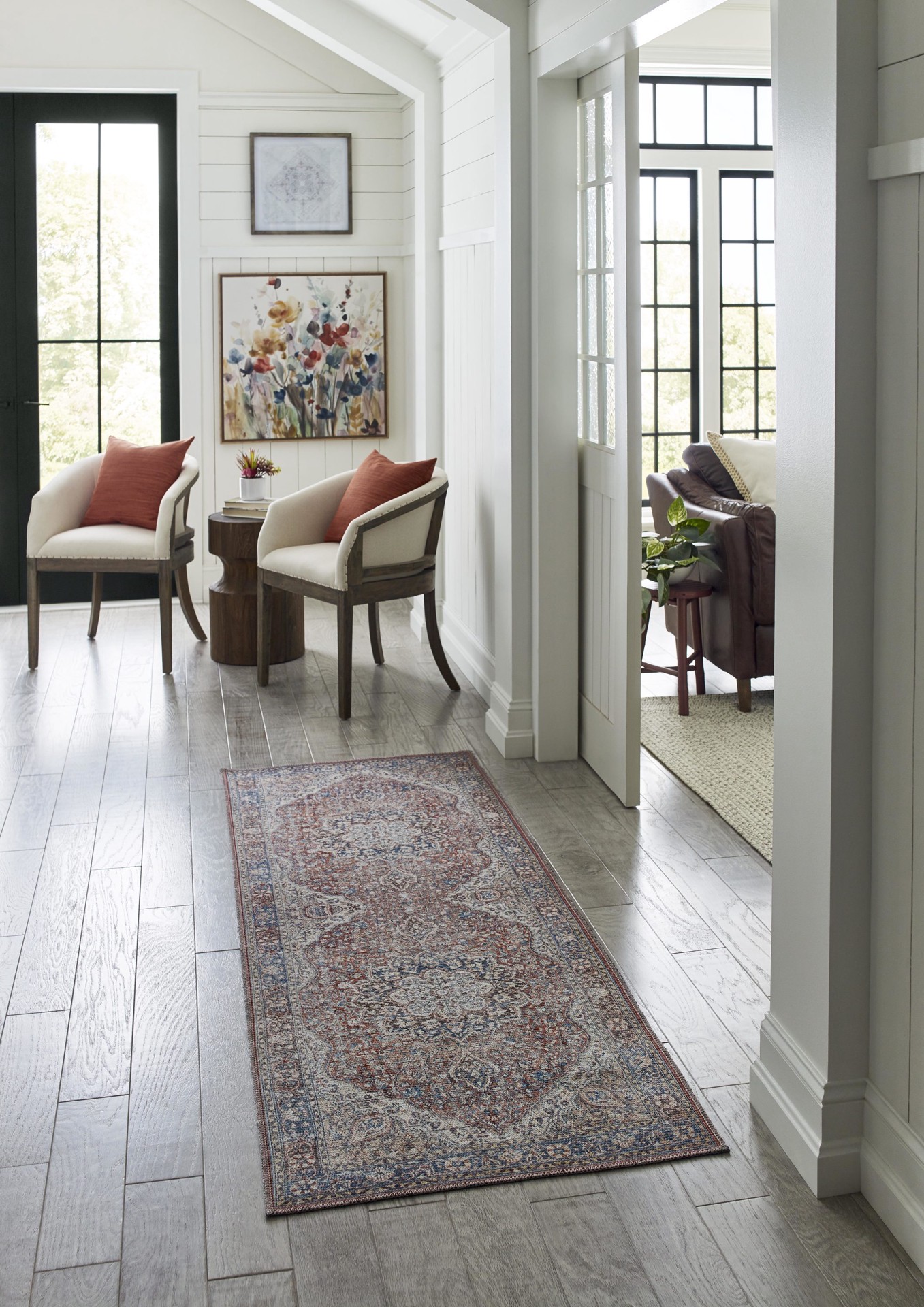 allen + roth with STAINMASTER Multi Print 2 x 8 (ft) Loomed Polyester Rust Rectangular Indoor Medallion Persian Spot Clean Only Pet Friendly Runner rug