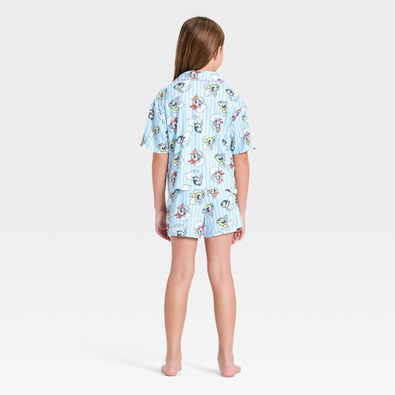 Girls' The Powerpuff Girls Button-Up Pajama Set - Turquoise XS