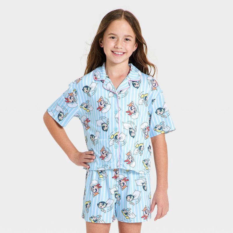 - Girls' 2pc Powerpuff Girls pajama coat set in Blue