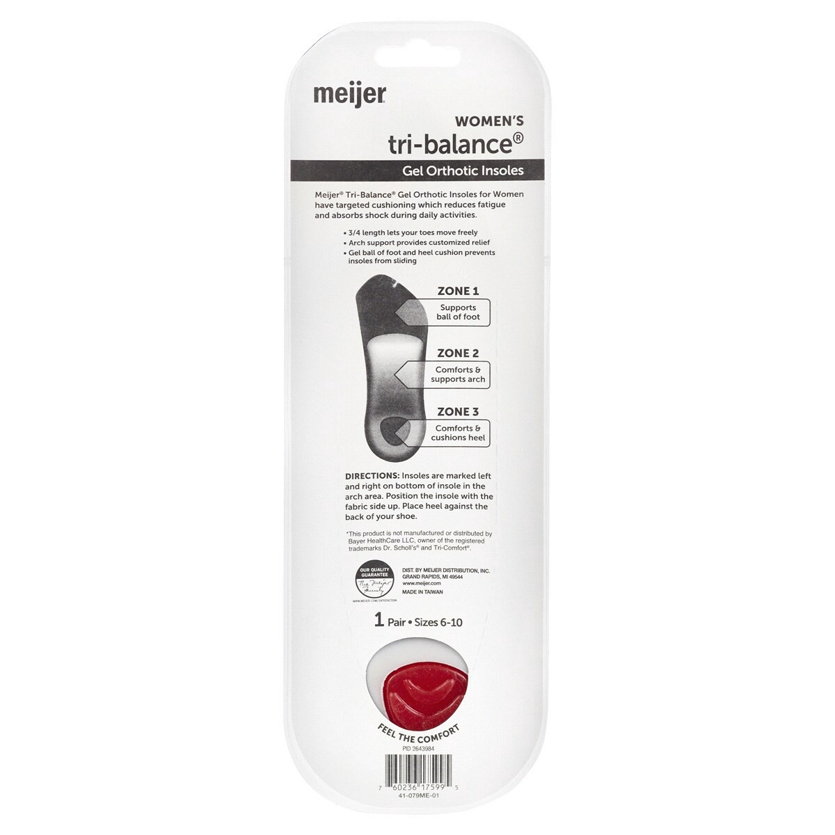 Meijer Tri Balance Gel Advanced Orthotic Insoles Women's, 1 Pair