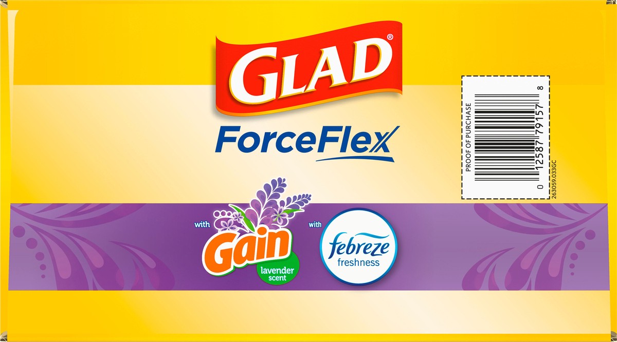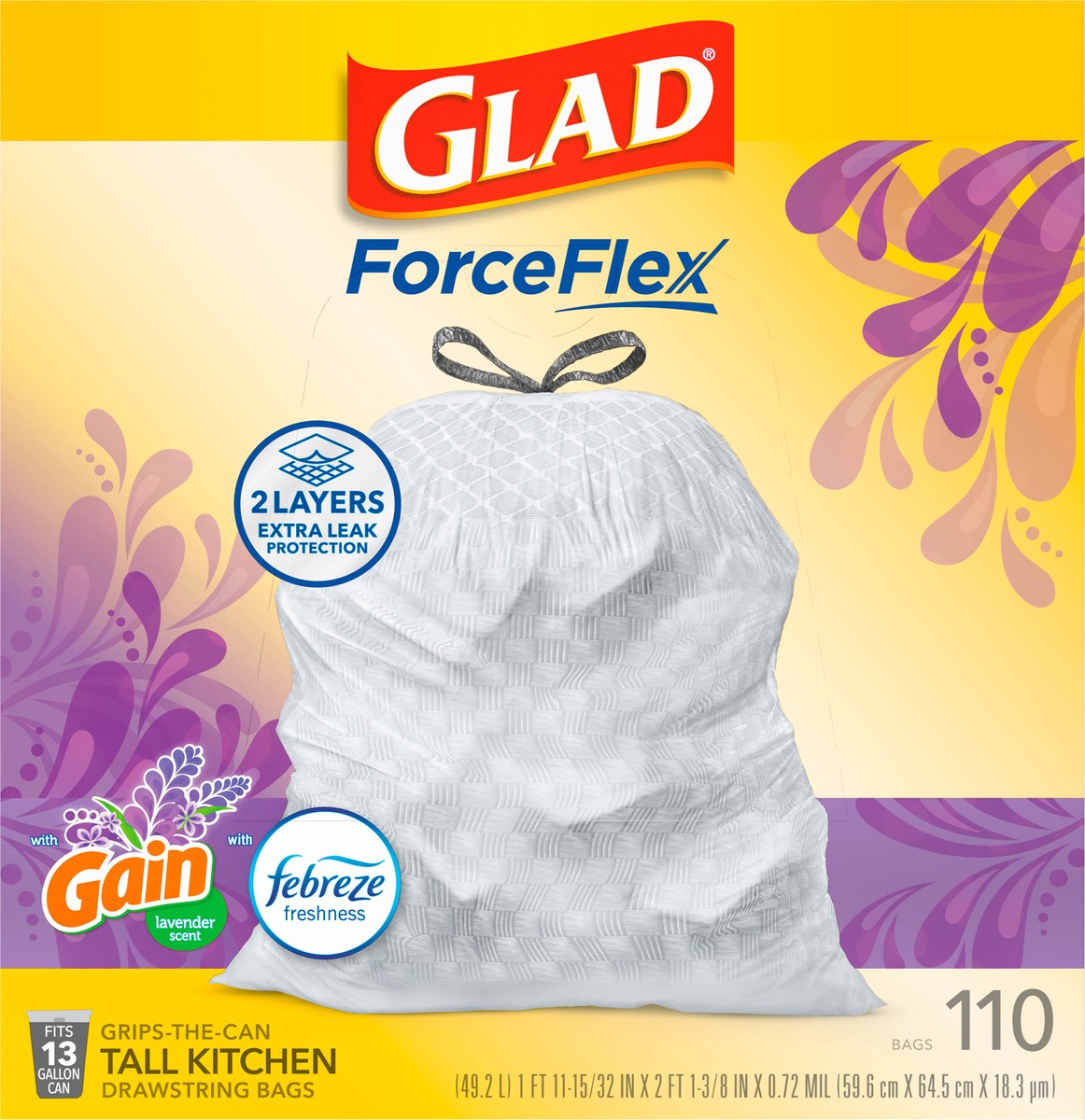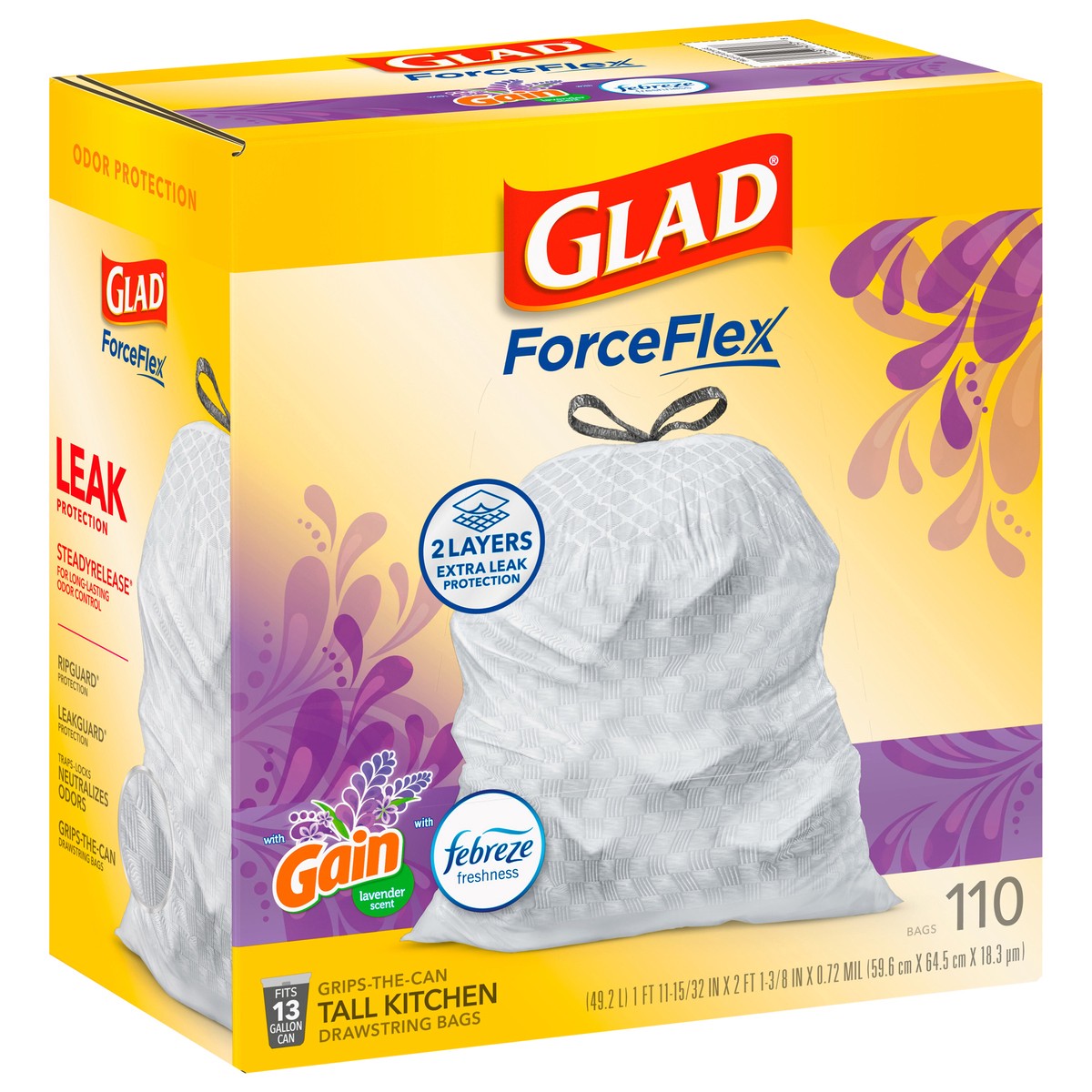 Glad Forceflex Tall Kitchen Drawstring Trash Bags 13 Gallon Gain Lavender With Febreze - 110 Count