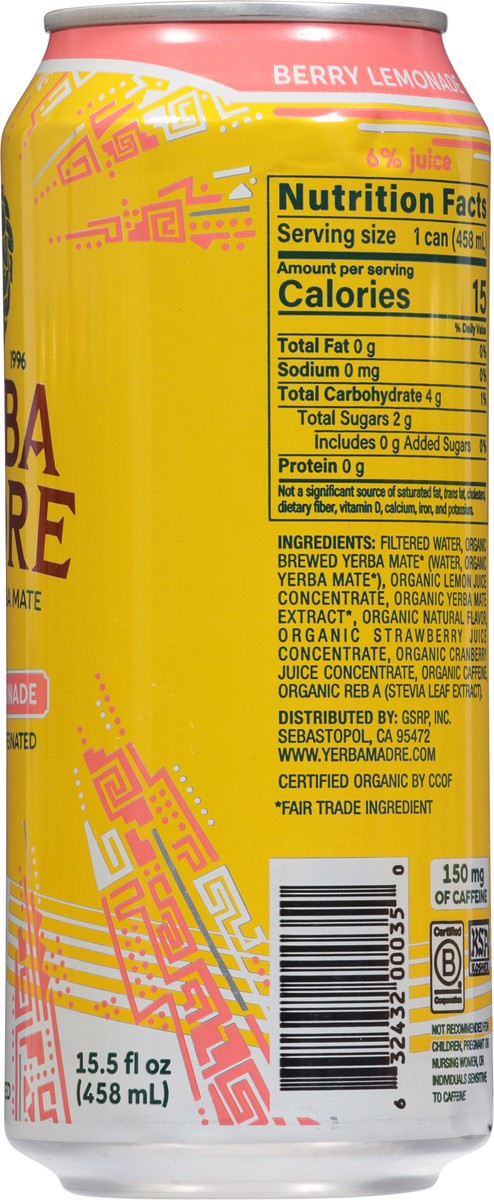 Yerba Madre Organic Berry Lemonade Yerba Mate 15.5 fl oz