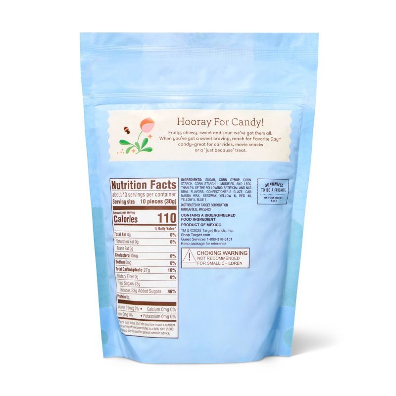 SUGAR, CORN SYRUP, CORN STARCH, CORN STARCH - MODIFIED, AND LESS THAN 2% OF THE FOLLOWING: ARTIFICIAL AND NATURAL FLAVORS, CONFECTIONER'S GLAZE, CARNAUBA WAX, BEESWAX, YELLOW 6, RED 40, YELLOW 5, BLUE…