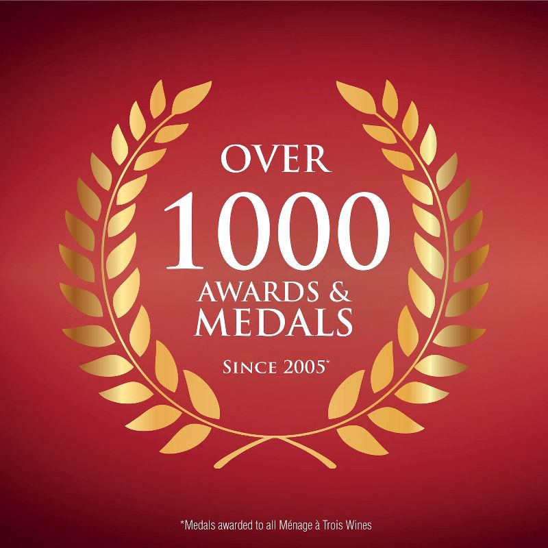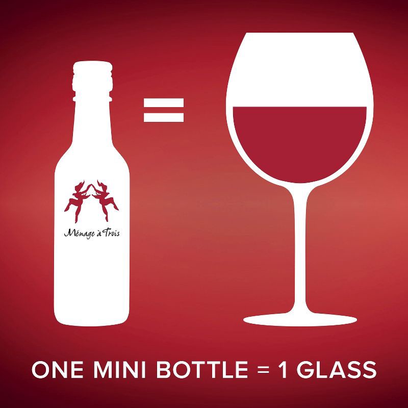 - Four 187mL wine bottles of Ménage Trois California Red Blend, 13.8% ABV, Glass, Screwcap