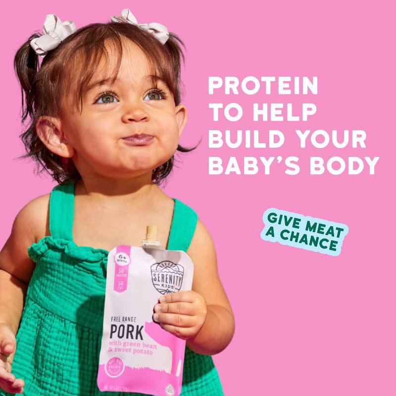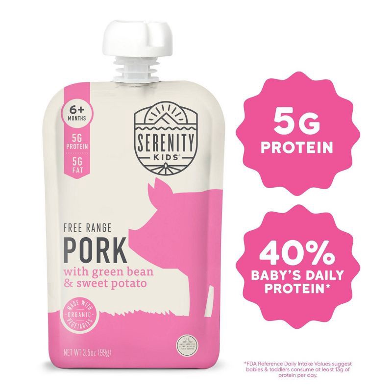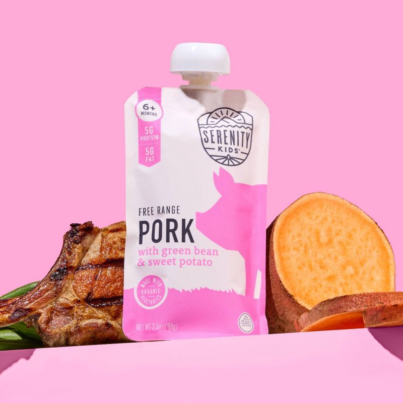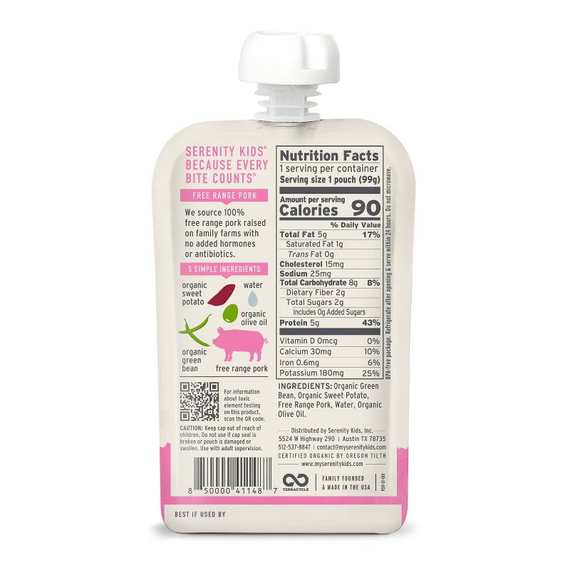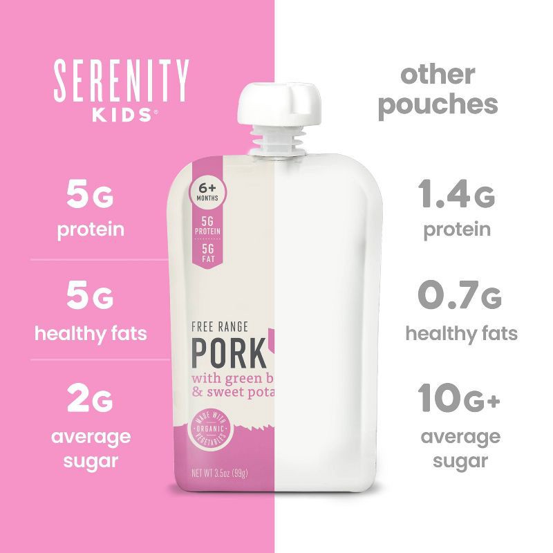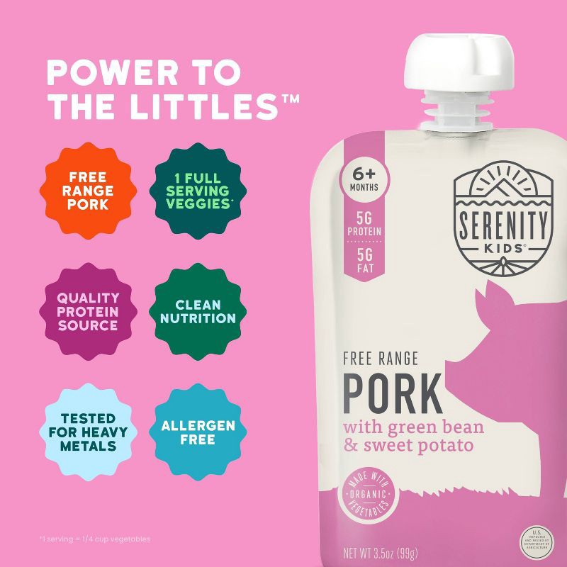 Serenity Kids Free Range Pork with Organic Green Beans and Sweet Potato Baby Food Pouch - 3.5oz: High Protein, 6 Months and Up, 2nd Stage
