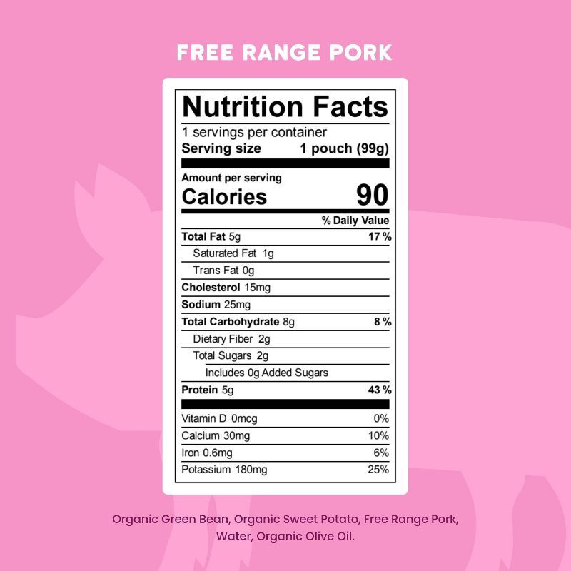 Organic Green Bean, Organic Sweet Potato, Free Range Pork, Water, Organic Olive Oil.