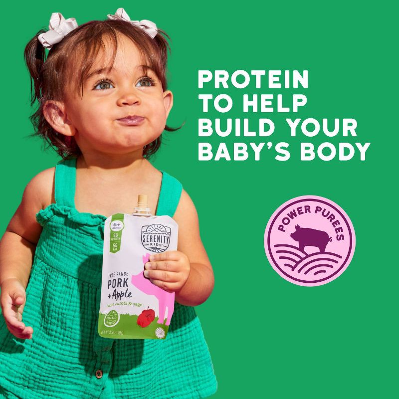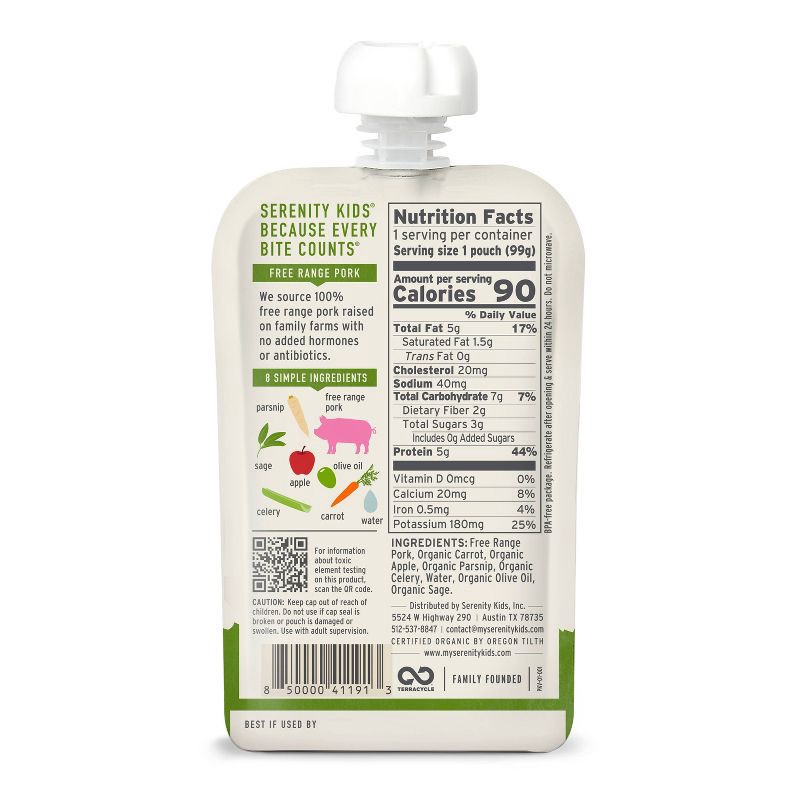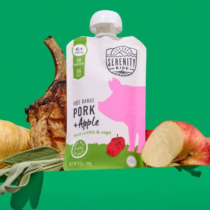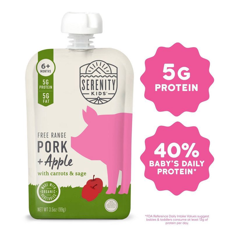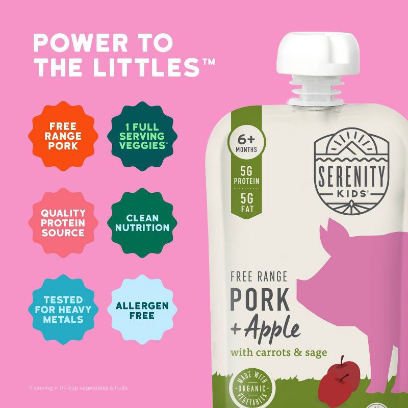 Serenity Kids Free Range Pork and Apple with Organic Carrots and Sage Baby Food Pouch - 3.5oz: High Protein, 6 Months & Up, 2nd Stage