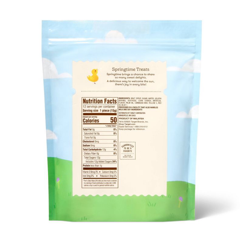 MALT SYRUP, SUGAR, WATER, GELATIN (BOVINE), DEXTROSE, CORN STARCH, ARTIFICIAL FLAVOR, PALM OIL, CARNAUBA WAX, YELLOW 5, RED 40, BLUE 1.