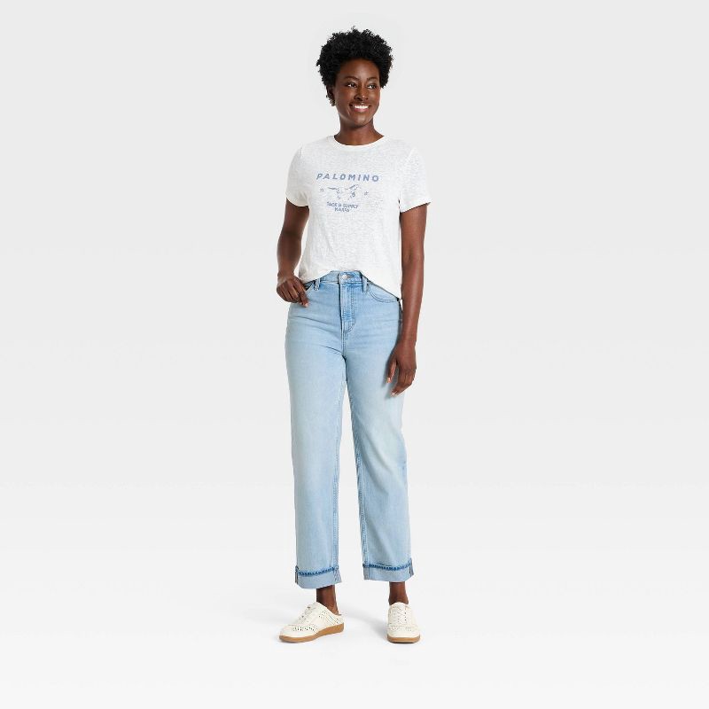 Elevate your casual look with these Super-High-Rise Cropped Jeans from Universal Thread™. These light-wash denim jeans are tailored in a super-high-rise, straight-leg silhouette with a regular fit, co…