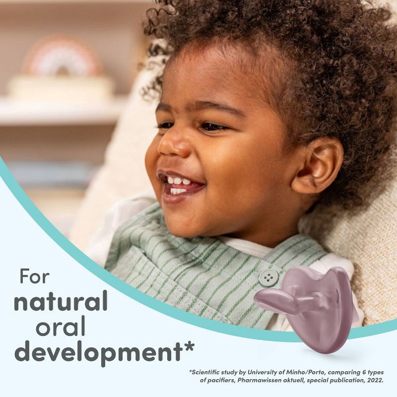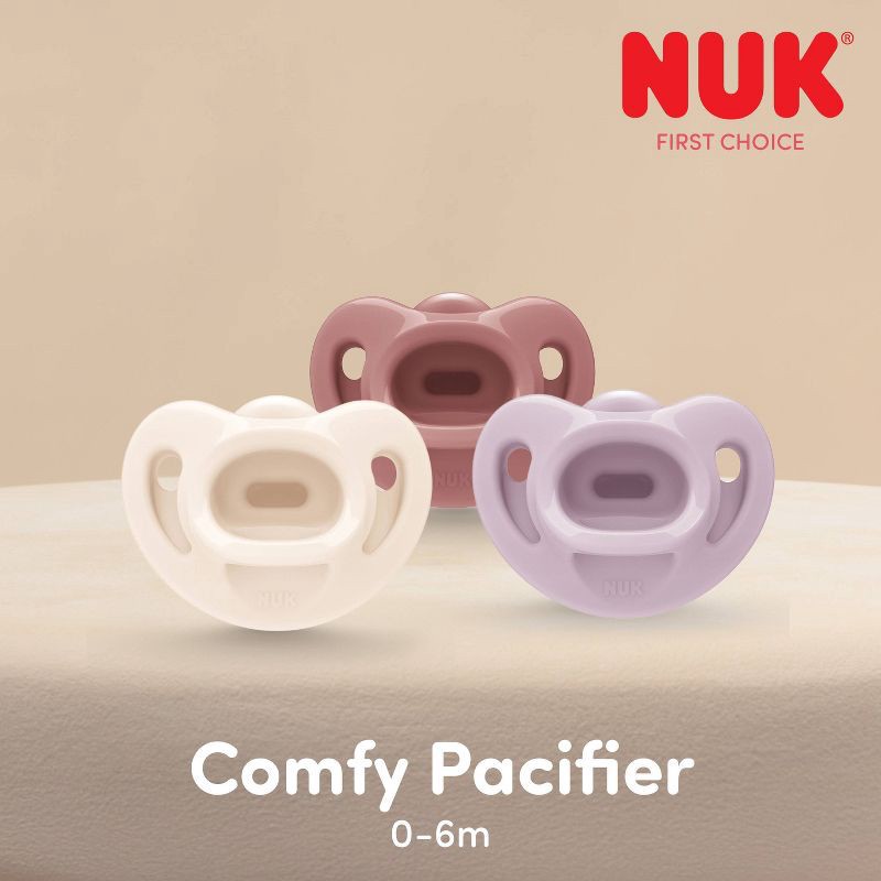 NUK First Choice Comfy Pacifiers feature a one-piece 100% silicone design that gently contours to baby's face. The heart-shaped shield fits perfectly under baby's nose for easier breathing and to prev…