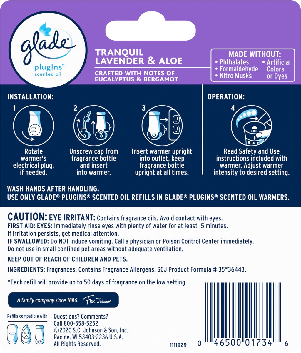Glade Plugins Tranquil Lavender And Aloe Scented Oil Air Freshener Refill - 2-1.34 Fl. Oz.
