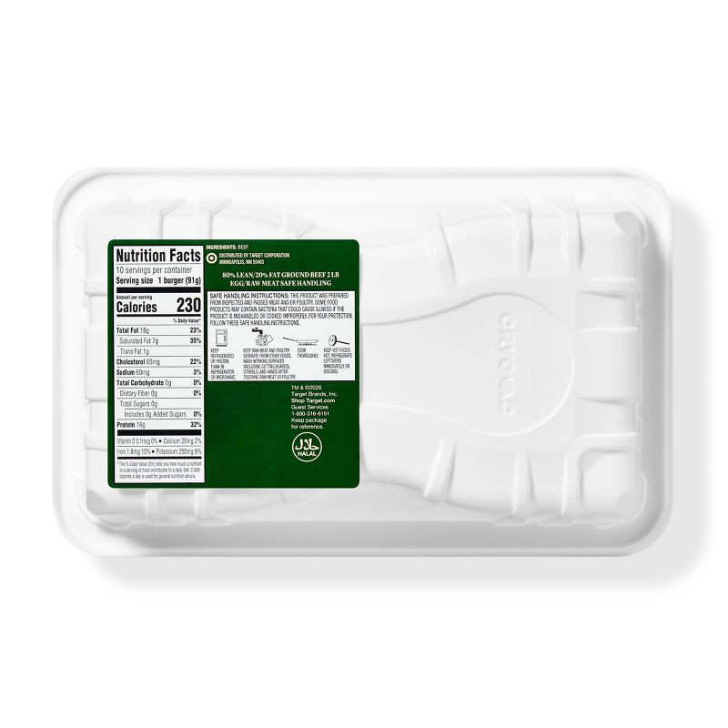 These Ground Beef Patties 80% lean 20% fat from Good & Gather™ are perfect for backyard BBQs and beyond. These ground beef patties are 80 percent lean and 20 percent fat and weigh 3.2 ounces each. Del…