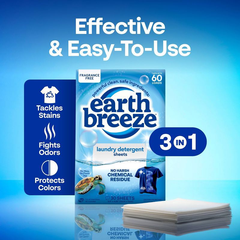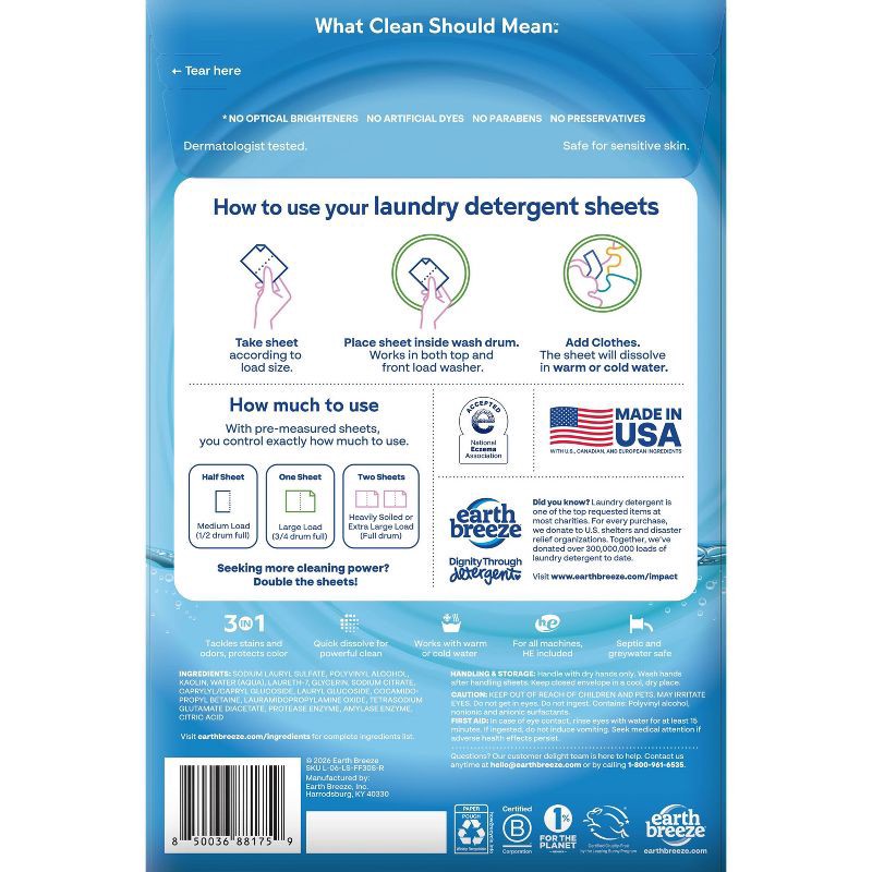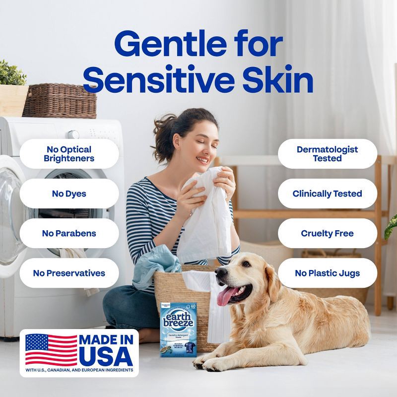 Earth Breeze Fragrance Free Laundry Detergent Sheets - 60 loads: Hypoallergenic, Bleach-Free, Non-Toxic, Dermatologist Tested
