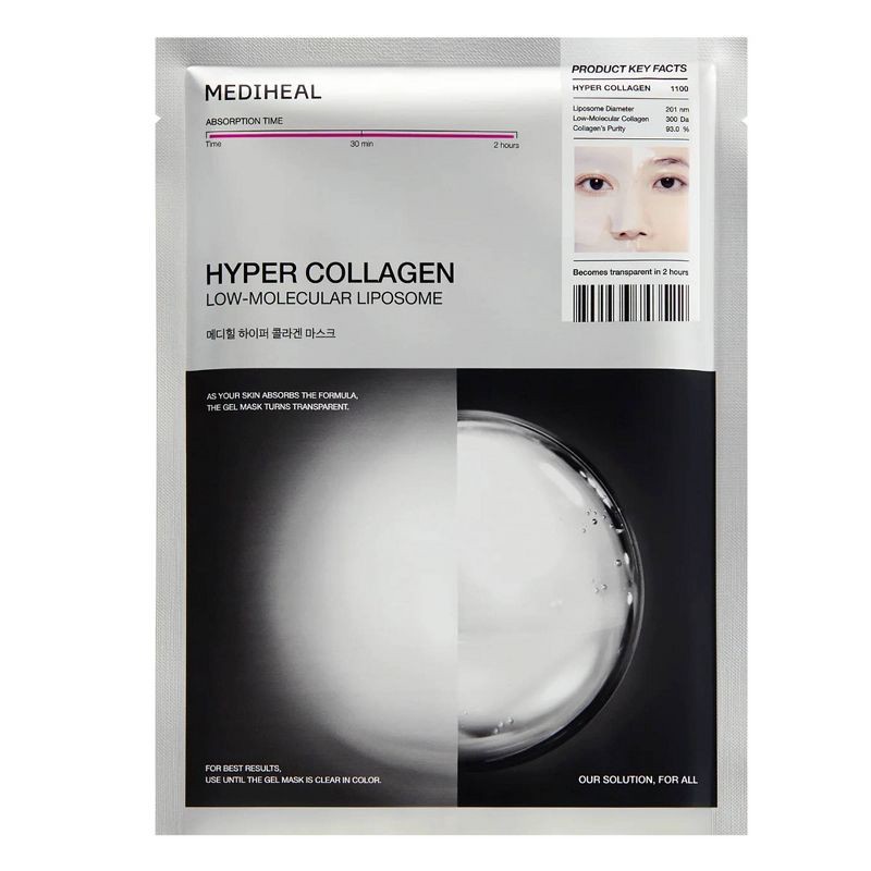 Mediheal Hyper Collagen Mask is a gel mask infused with a full ampoule of collagen to target dryness and loss of firmness. Feels intensive, leaving skin more lifted, supple, and long-lastingly hydrate…