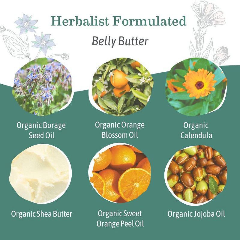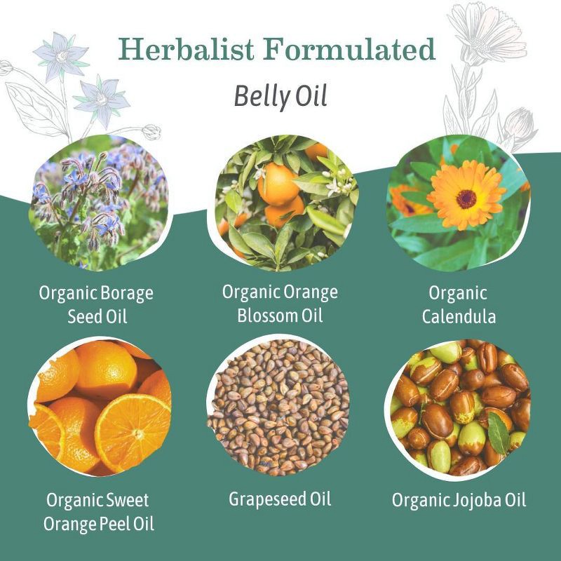 - Thoughtfully formulated with blends of organic herbs and oils to encourage elasticity and reduce the appearance of stretch marks