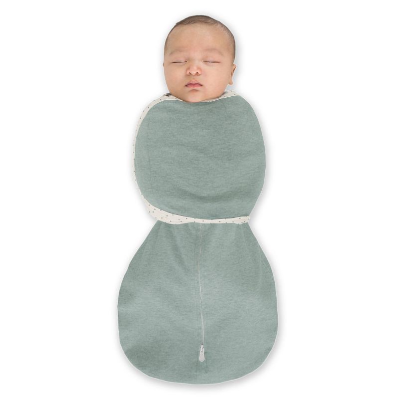 SwaddleDesigns Baby Omni Swaddle Sack with Wrap, Arms Up Elbow Length Sleeve with Mitten Cuffs - Heathered Jadeite 0-3m