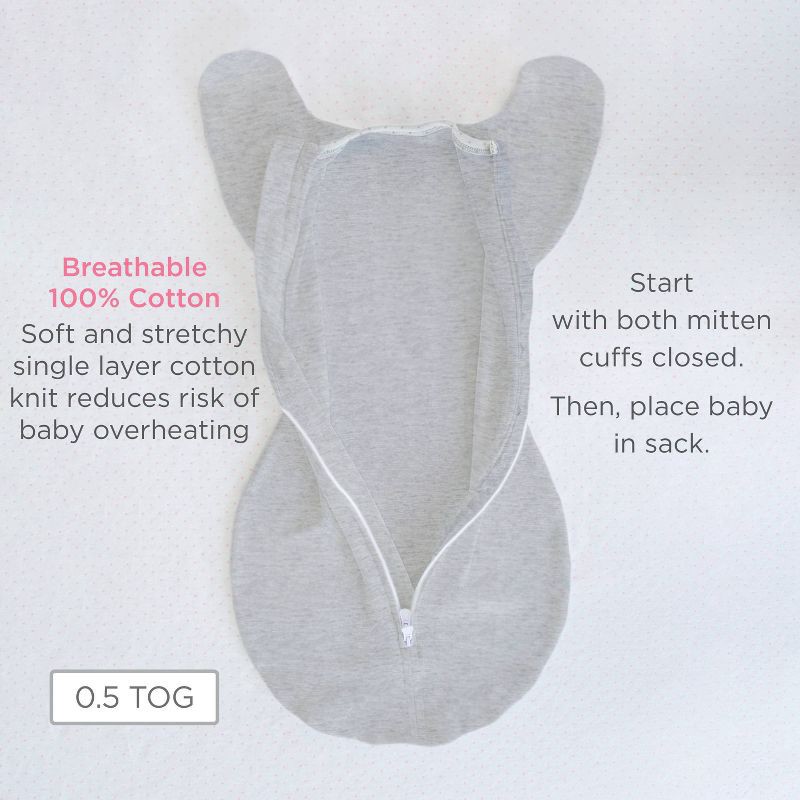 - Ideal for babies who like to sleep with arms up, because uniquely shaped, half-length sleeves with mitten cuffs closed provide partial suppression of Moro (startle) reflex, so baby sleeps better and longer