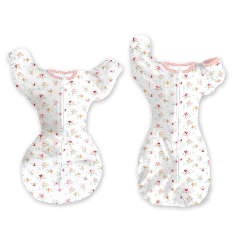 SwaddleDesigns Baby Girl Transitional Swaddle Sack, Arms Up Elbow Length Sleeve Wearable Blanket - Peachy Pink Floral - 3-6m