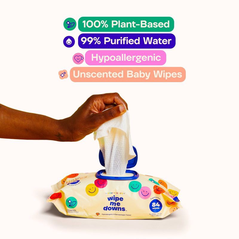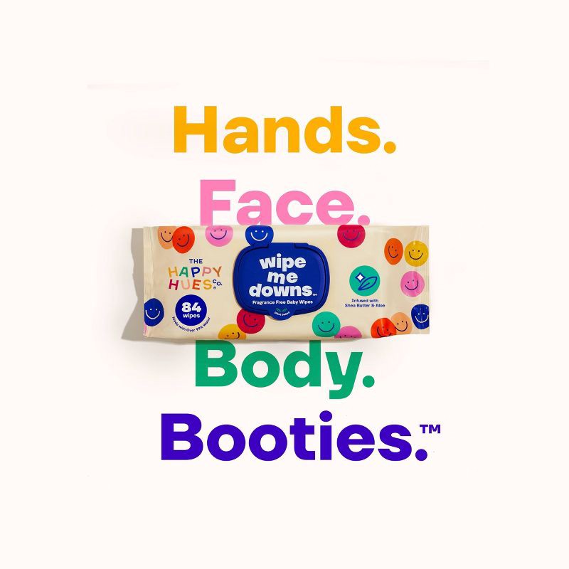 The Happy Hues Company is on a mission to nurture happy and healthy babies, inside and out.Introducing Wipe Me Downs – our all-new, plant-based, shea butter and aloe-infused, fragrance-free baby wipes…