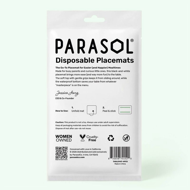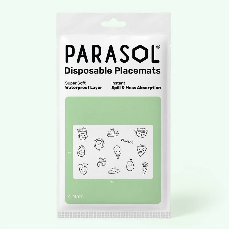 Parasol 4ct Disposable Placemats - White: Non-Toxic, Polypropylene, Printed, Food Theme