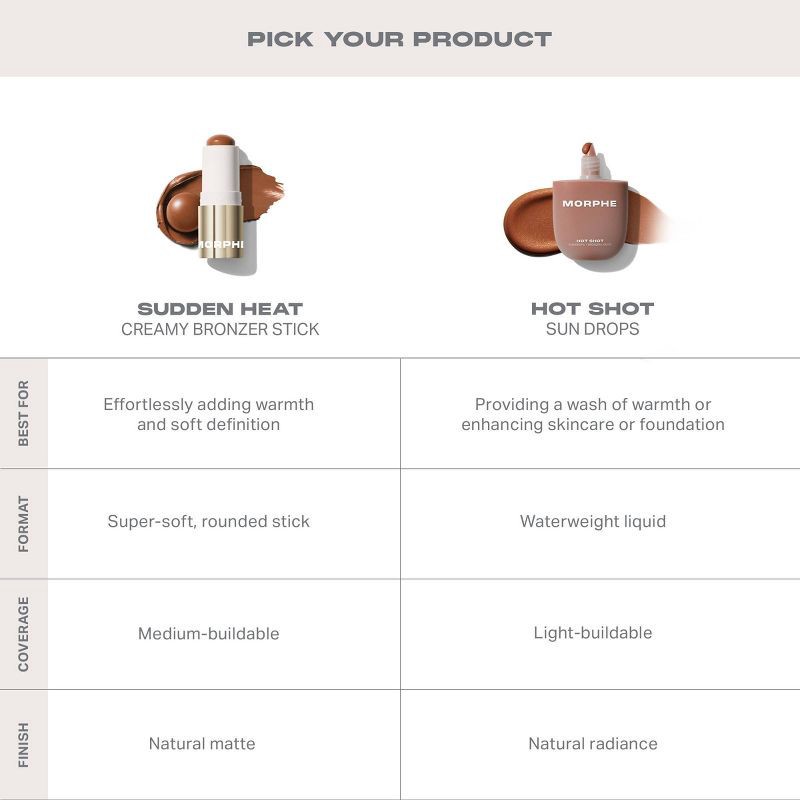 Experience a surge of effortless complexion warmth and dimension with the Morphe Sudden Heat Creamy Bronzer Stick. This ultracreamy yet lightweight bronzer—enriched with vitamin E and jojoba oil—glide…