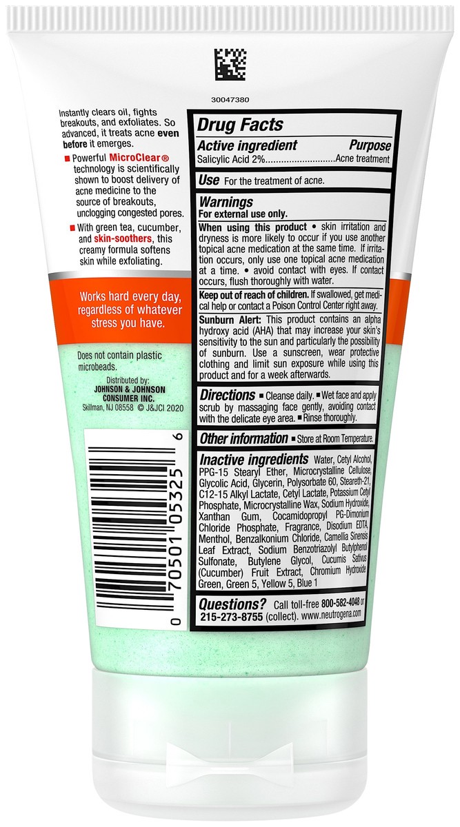 - A proven acne-fighting ingredient to help clear acneMicroClear technology scientifically shown to boost delivery of acne medication to breakout sourceExfoliating facial scrub formulated with gentle exfoliators and does not contain plastic microbeadsCreamy face scrub formula with skin soothers