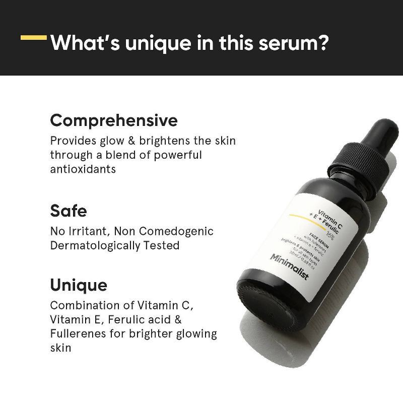 Minimalist Vitamin C + E + Ferulic 16% Face Serum - 1 fl oz: No Fragrance Added, Recommended for Normal Skin