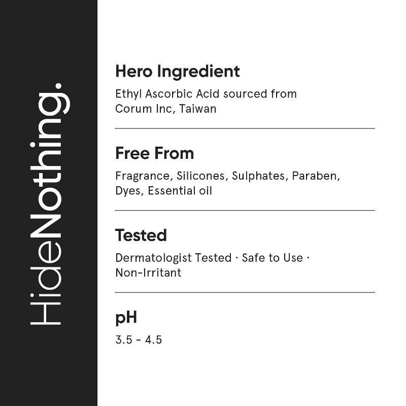 - Contains stable, high-potency Vitamin C (L-ascorbic acid) to brighten complexion and fade dark spots