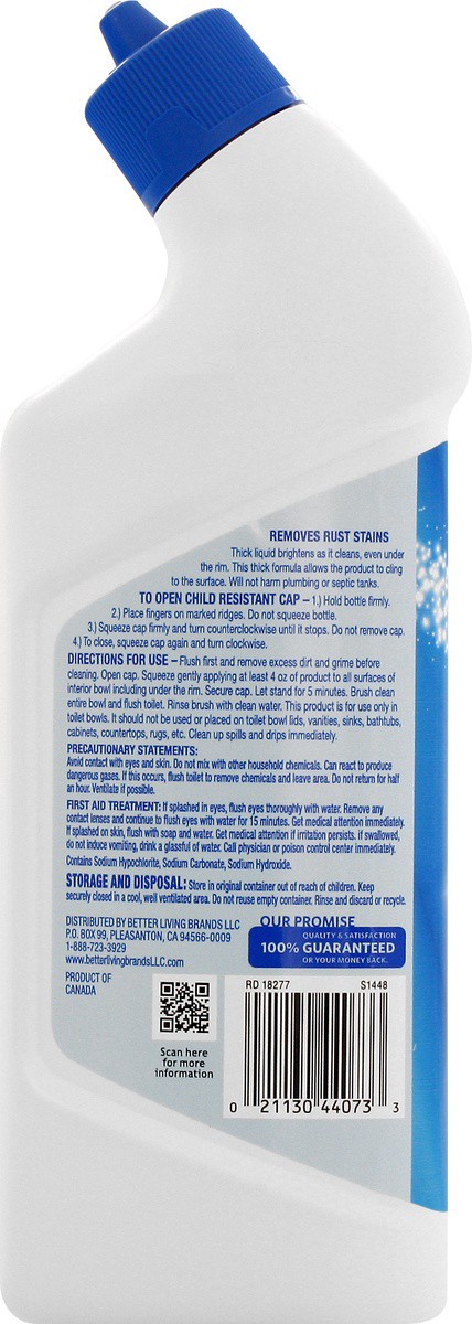 Cleans & removes rust stains. Removes Rust Stains: Thick liquid brightens as it cleans, even under the rim. This thick formula allows the product to cling to the surface. Will not harm plumbing or sep…