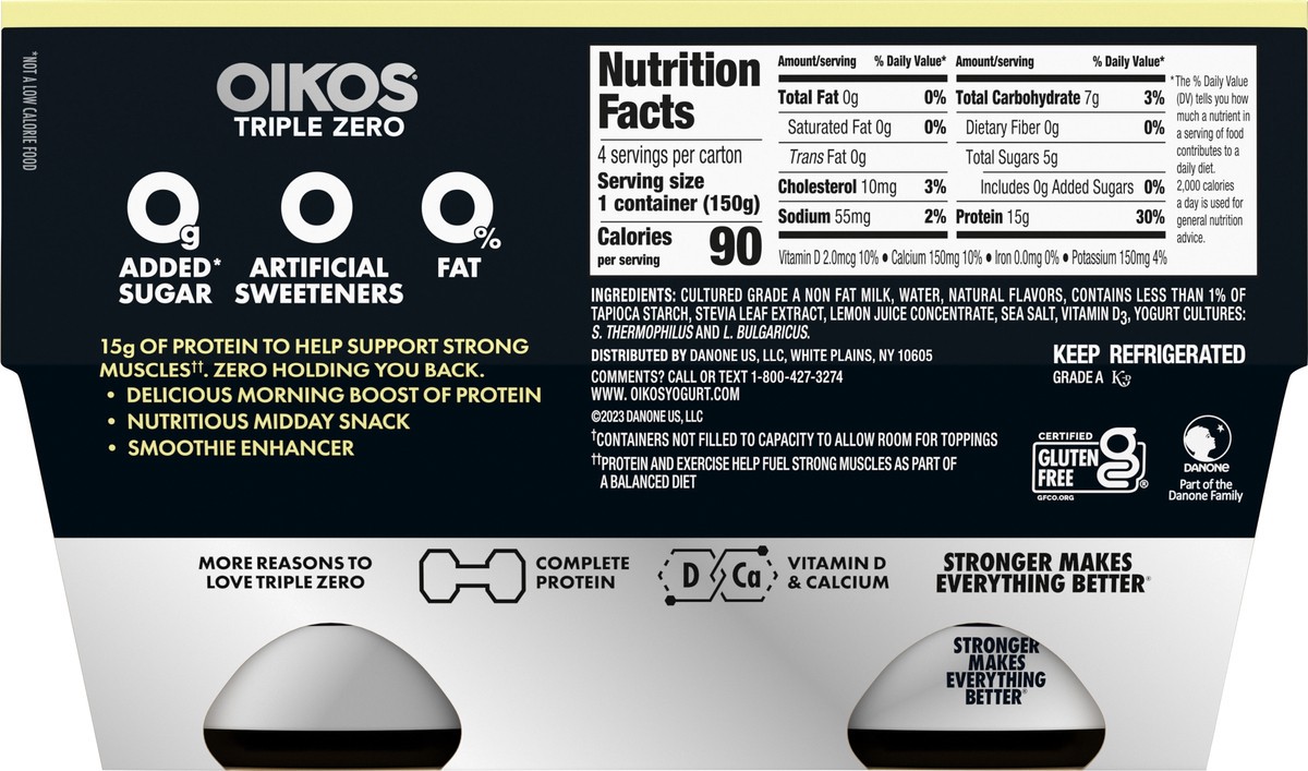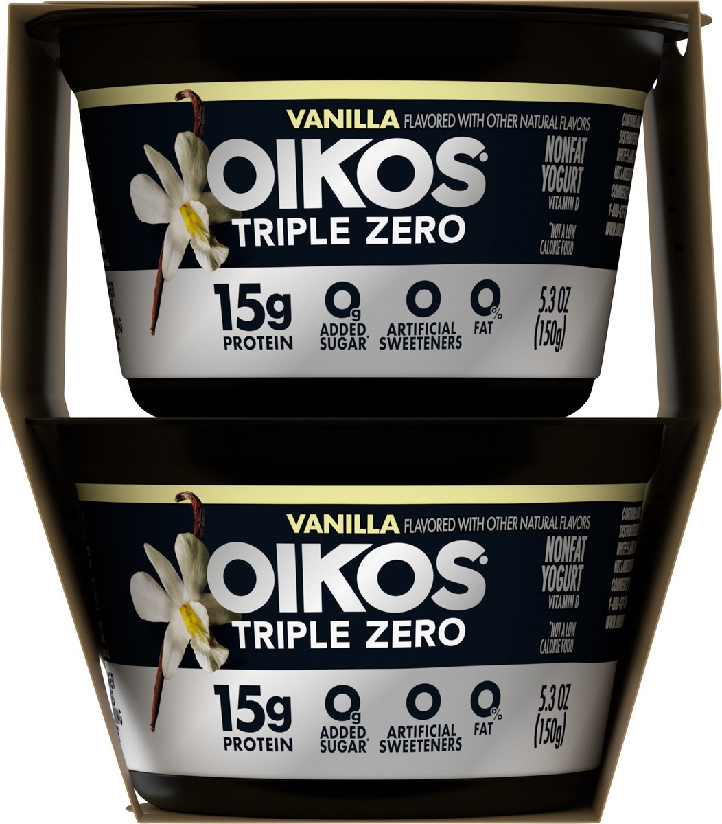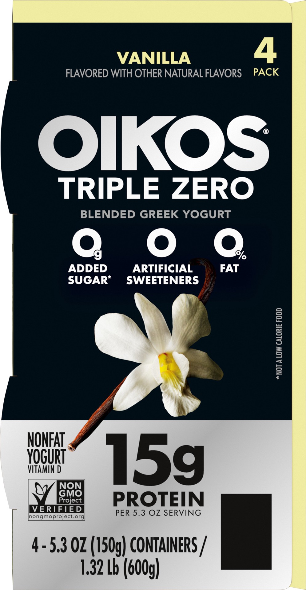 Enjoy epic tastes with Oikos Triple Zero Nonfat Vanilla Greek Yogurt Pack, four delicious nonfat Greek yogurt cups with more of what you want and less of what you don''t. Each Oikos Triple Zero yogurt…
