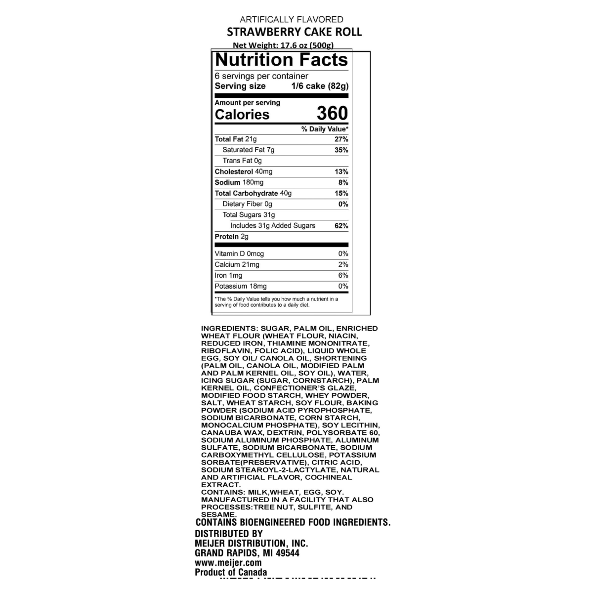 Indulge in the sweet delight of Fresh from Meijer Strawberry Cake Roll, a treat that's sure to satisfy your sweet tooth. This artificially flavored cake roll is a delicious blend of enriched wheat flo…