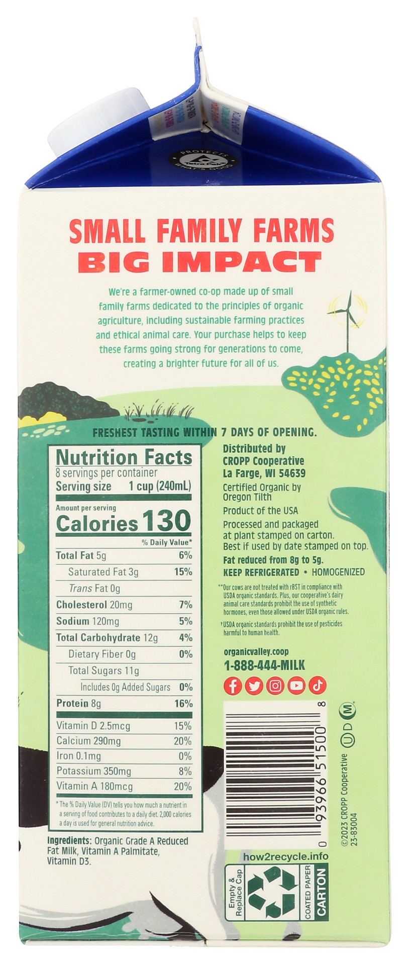 Organic Valley Milk Organic Reduced 2% Milk Fat - Half Gallon