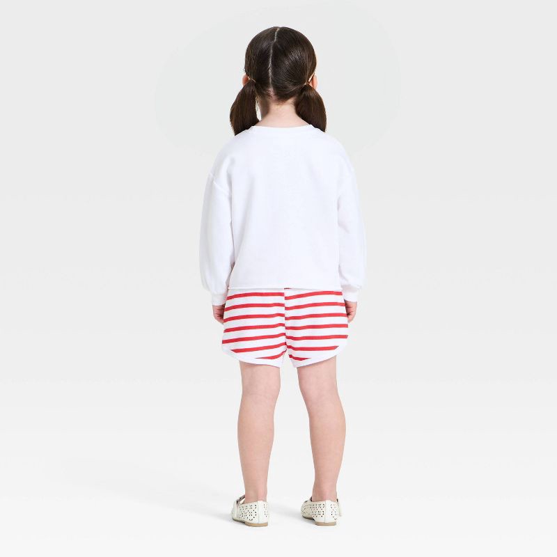 Grayson Mini Toddler Girls' 2pc Americana Puppy Flag Crewneck Sweatshirt & Shorts Set - White 4T