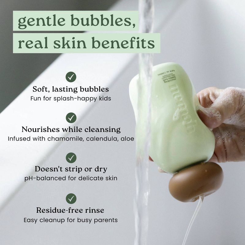 - Gentle bubbles, real skin benefits: Soft, lasting bubbles that actually nourish-infused with calming chamomile, soothing calendula, hydrating aloe, and jojoba oil to help support delicate skin during bath time
