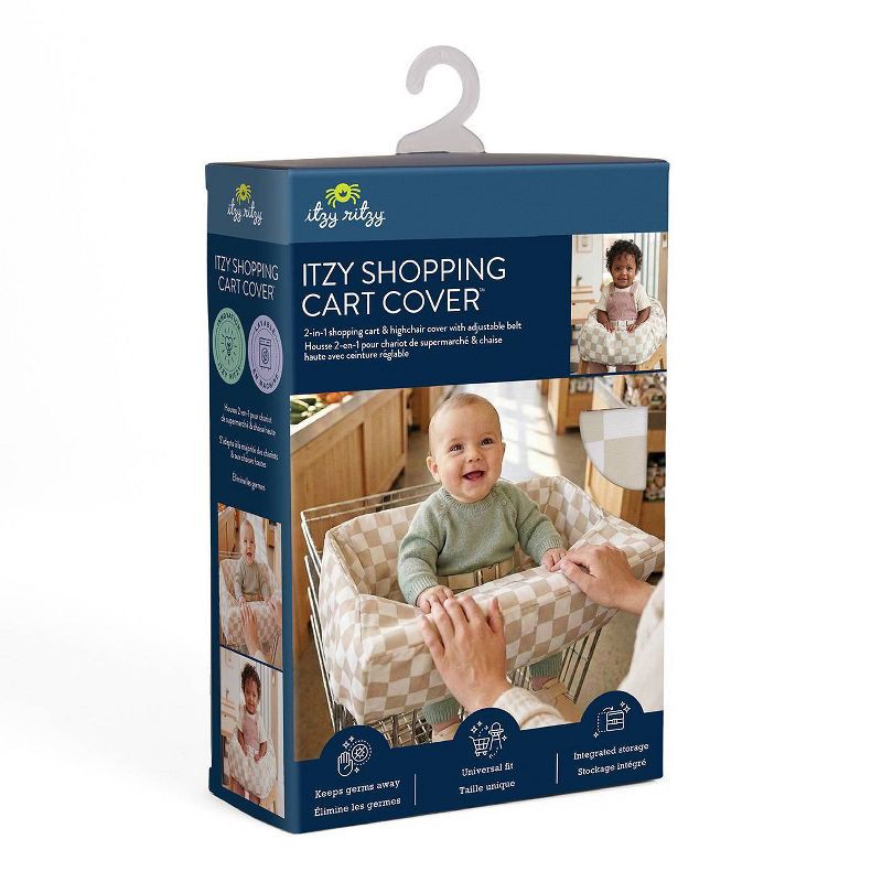 A Priceless Cart Companion! Give your little shopping buddy a VIP seat! The Itzy Shopping Cart Cover fits most shopping carts and restaurant-style high chairs to protect baby from germs. Simply toss t…