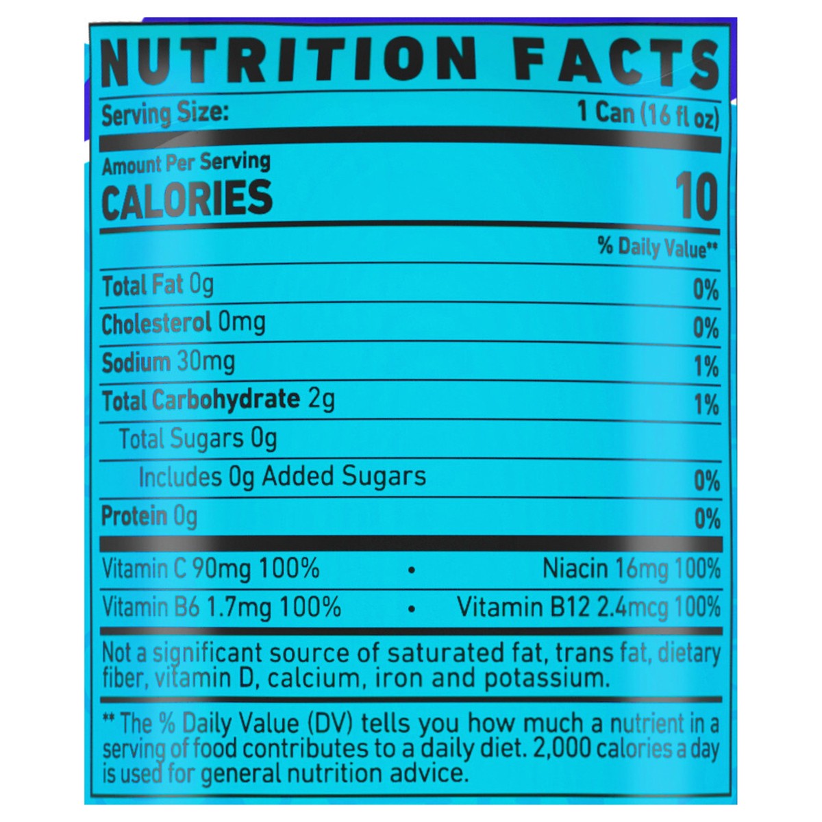 Carbonated Water, Citric Acid, Natural and Artificial Flavor, L-Carnitine L-Tartrate, Taurine, Tartaric Acid, Caffeine, Sucralose, Acesulfame Potassium, Alpha-Glyceryl Phosphoryl Choline, Sodium Benzo…