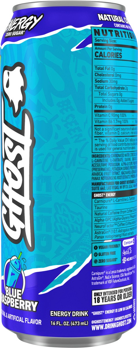 - TOTAL TRANSPARENCY: All Ghost products feature a transparent label that fully discloses the dose of each active ingredient. Zero proprietary blends means you know what you’re getting in each and every sip. Ghost Energy contains zero-sugars and is vegan-friendly and gluten-free.