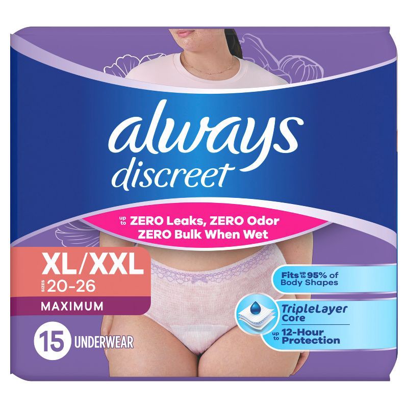 Always Discreet Adult Postpartum Incontinence Underwear for Women - Maximum Protection - XL - 15ct
