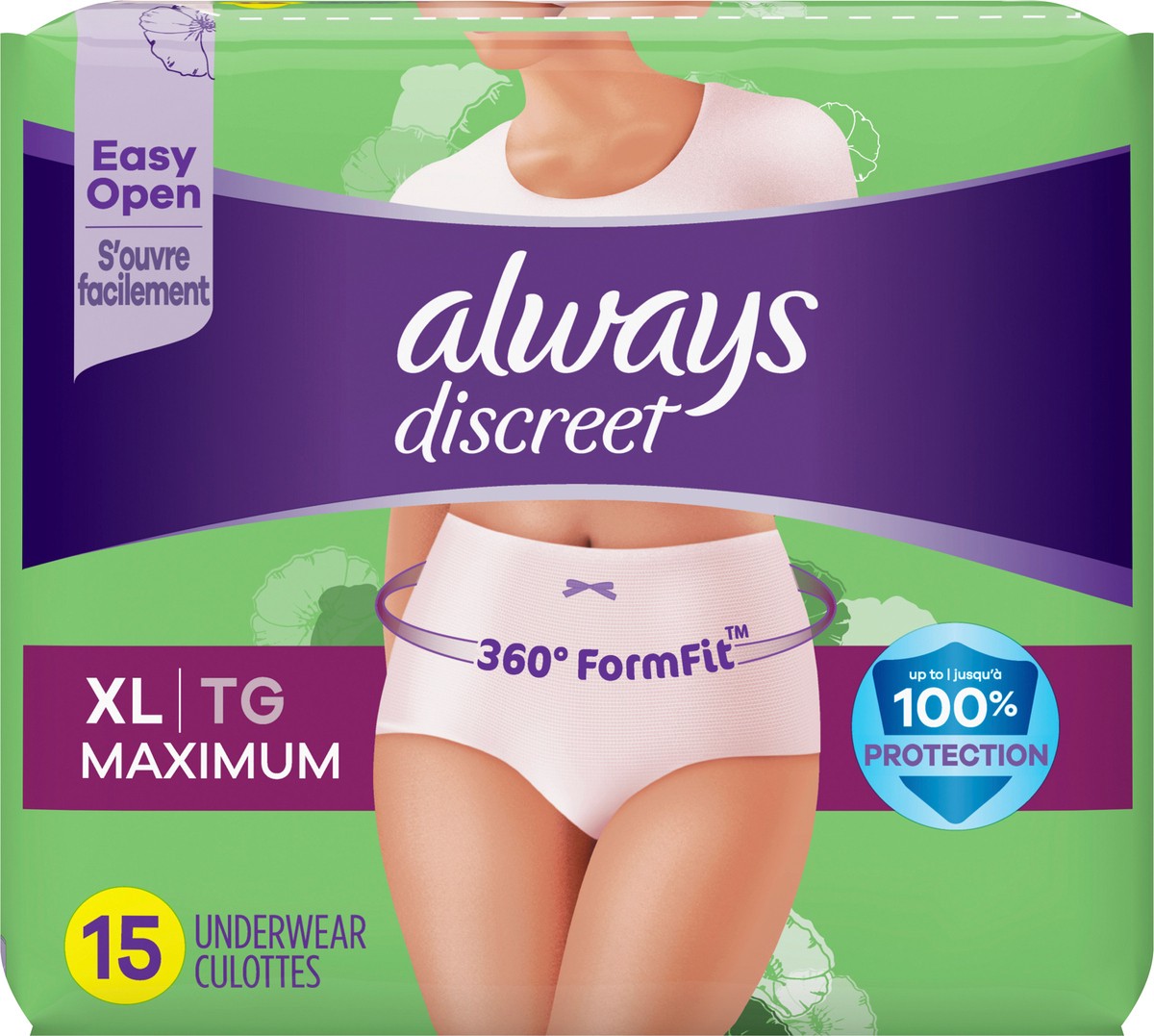 Always Discreet Incontinence Underwear For Women Maximum Absorbency Xl - 15 Count