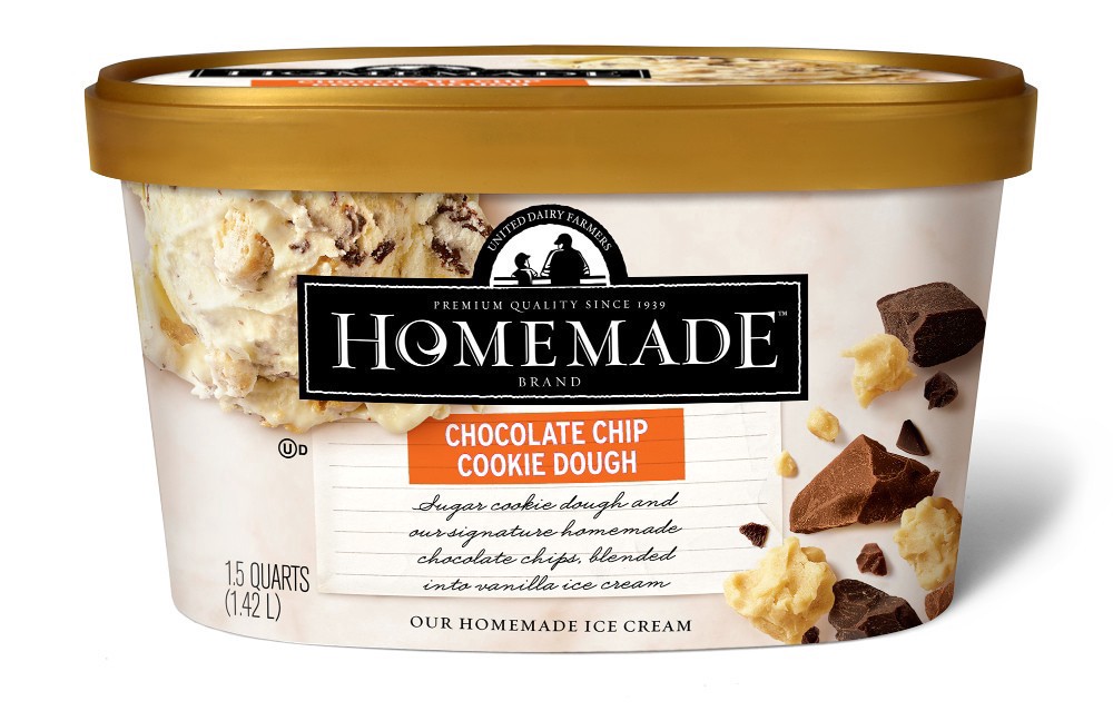 We start with some sure-mighty-tasty sugar cookie dough, mix the batter up with a heaping helping or our own Homemade dark chocolate chips, and stir gobs of those globs into our very best vanilla ice …